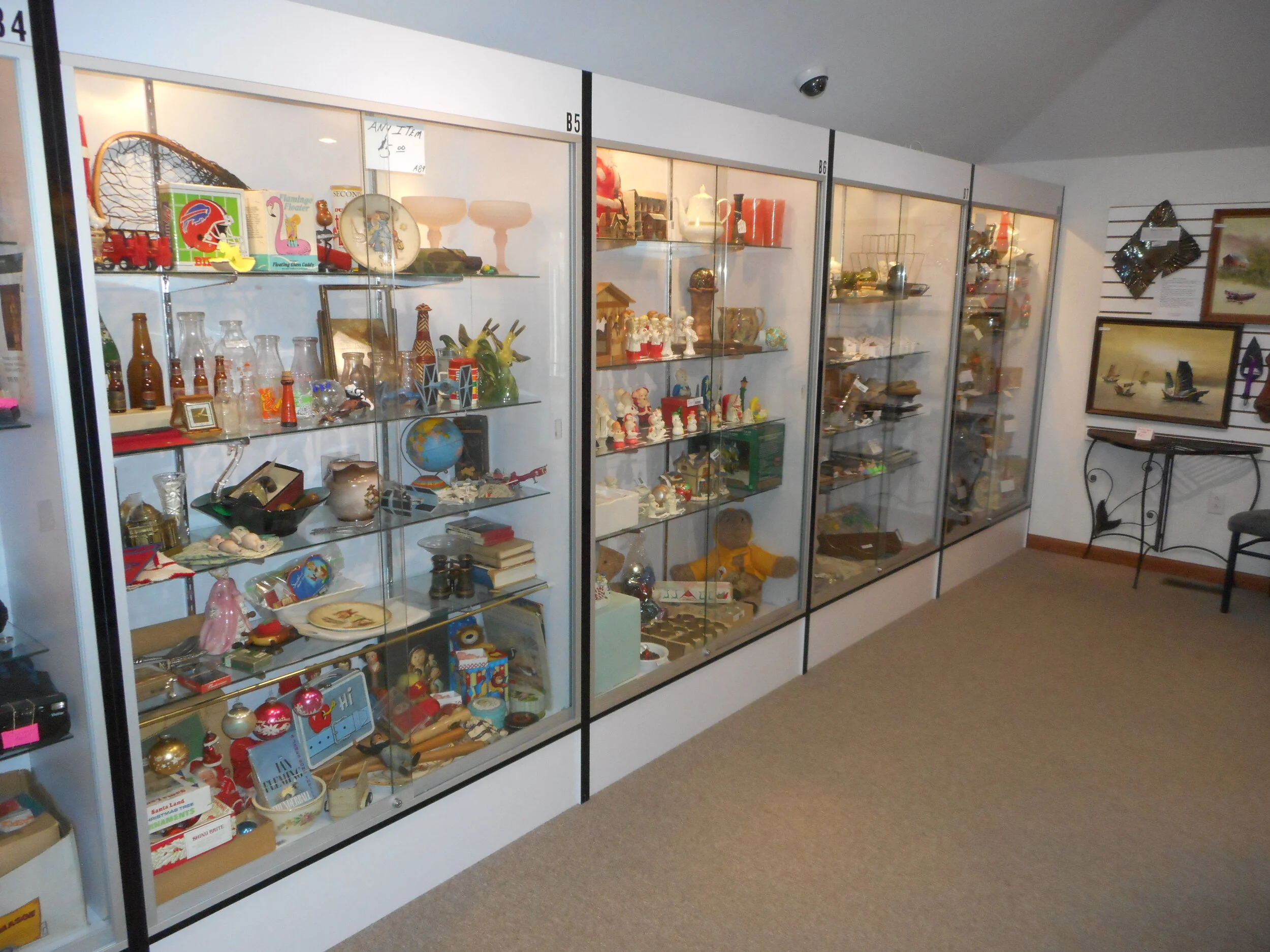 We have about 50 (4' wide x 6' tall x 16" deep) showcases on the premise to rent out ($50 a month, 10% commission on items sold). You can fill them up with just about anything you have and we'll sell it for you! The only exception is no guns or alcohol can be sold by law.